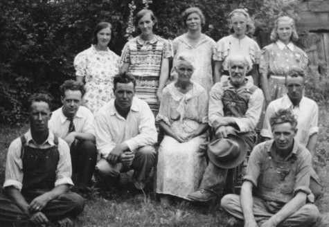 The Scott Family of Dallas Co., MO - (back row) Naomi, Cora, Pearl, Jeanette, June, (front row) Ona, Victor, Charles, William Henry, Nettie (Guthrie), Mackey, Murry